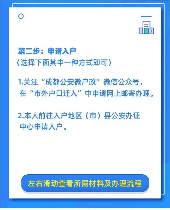 1.关注“成都公安微户政”微信公众号,在“市外户口迁入”中申请网.上邮寄办理。