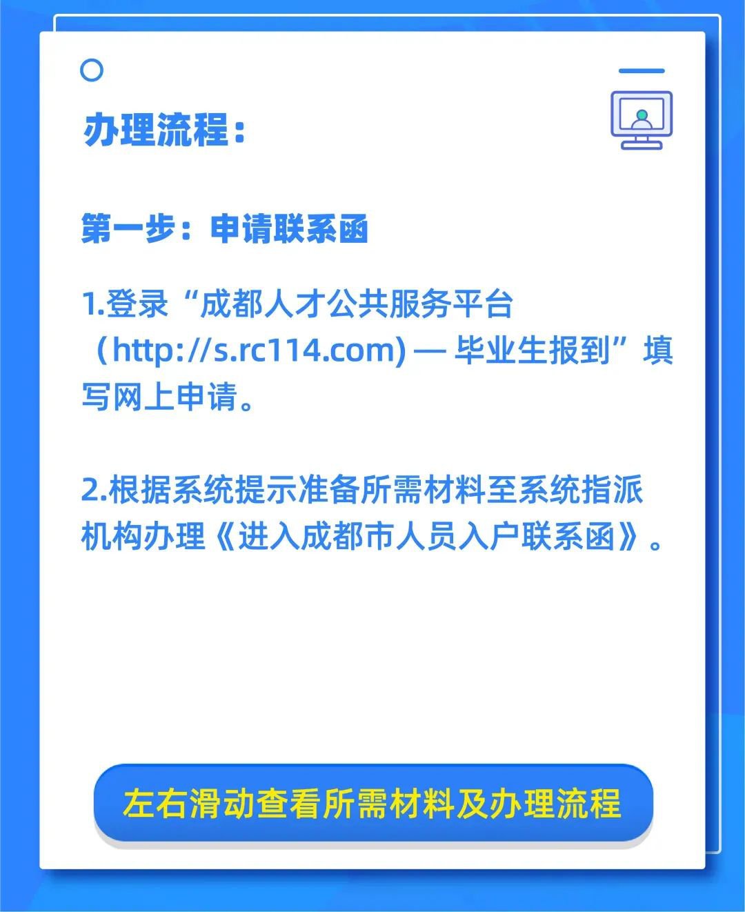 2.根据系统提示准备所需材料至系统指派机构办理《进入成都市人员入户联系函》。