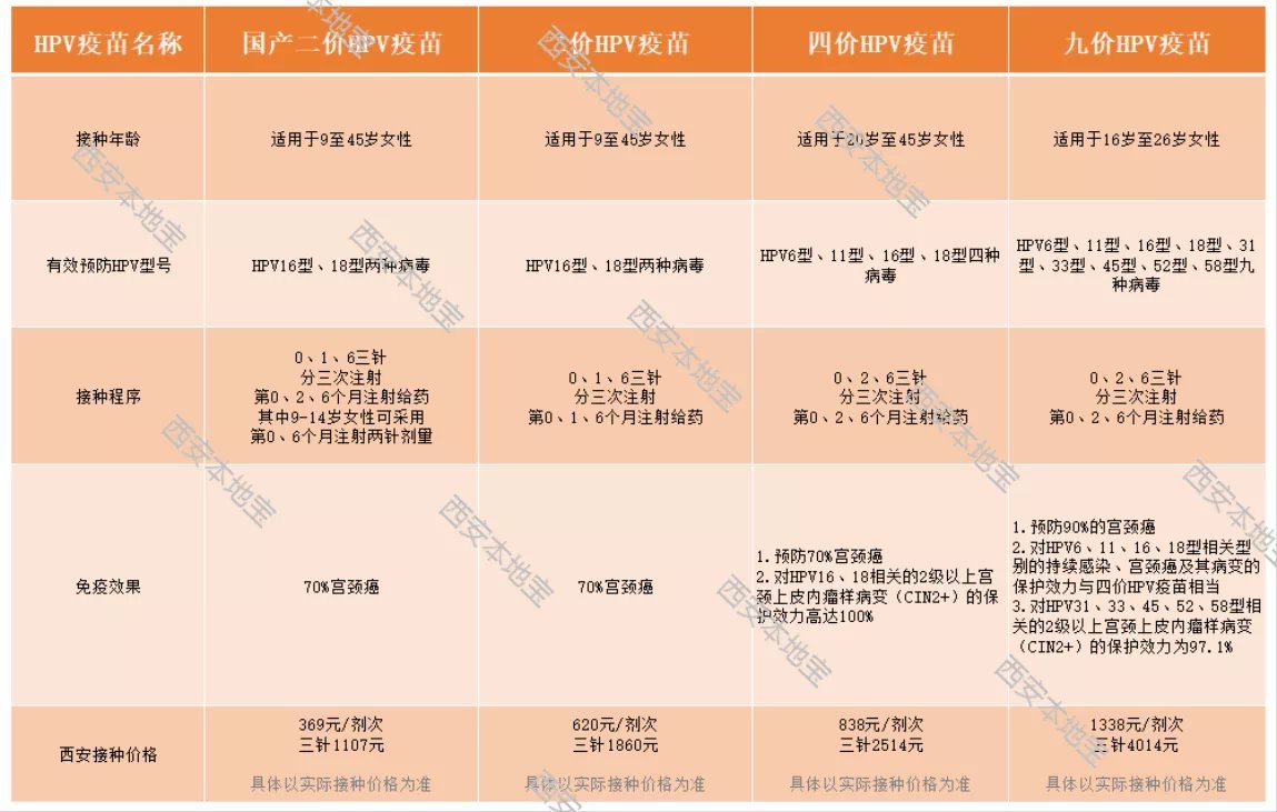 国产二价369元/针,进口二价620元/针,进口四价838元/支,进口九价1338元/针