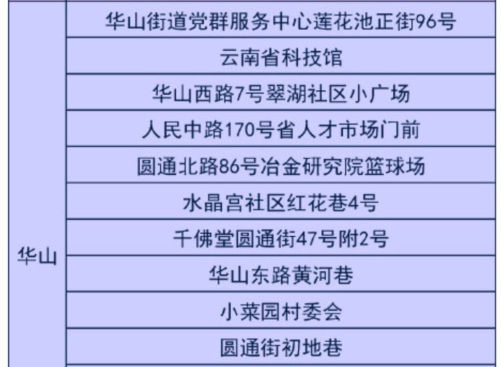 昆明五华区临时核酸检测点位就近免费检测