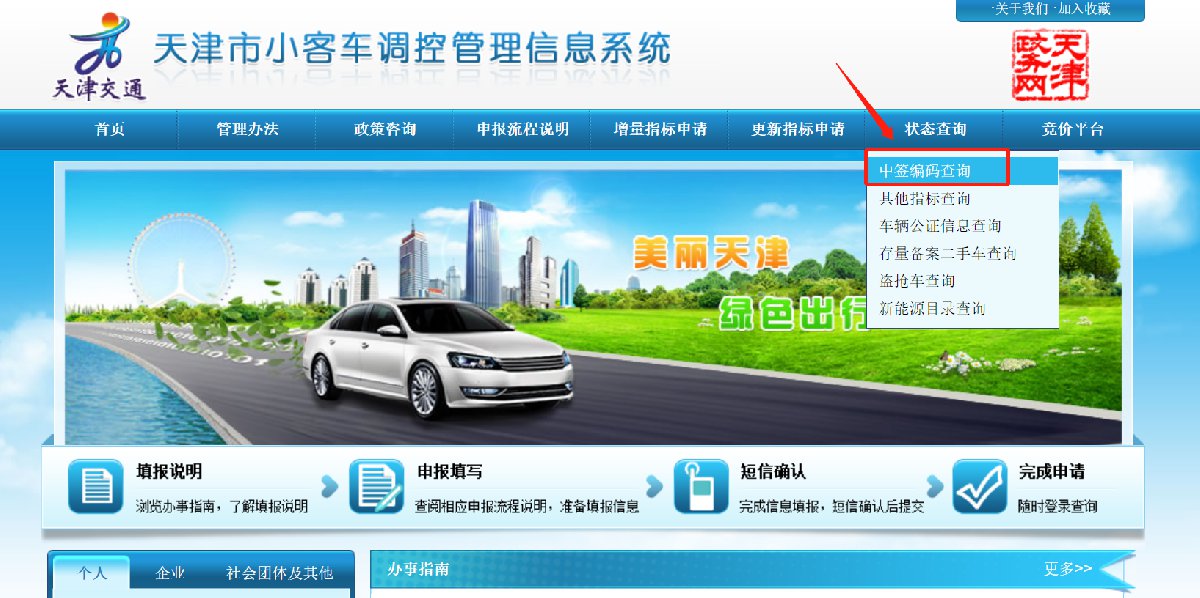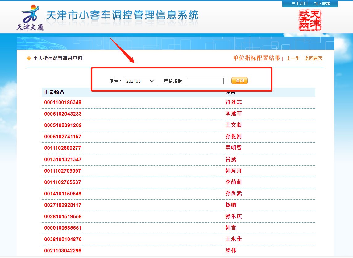 》》天津小客车摇号查询指南: