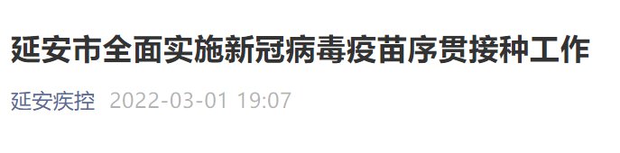 2022年3月1日,陕西延安正式启动新冠疫苗序贯加强针接种。
