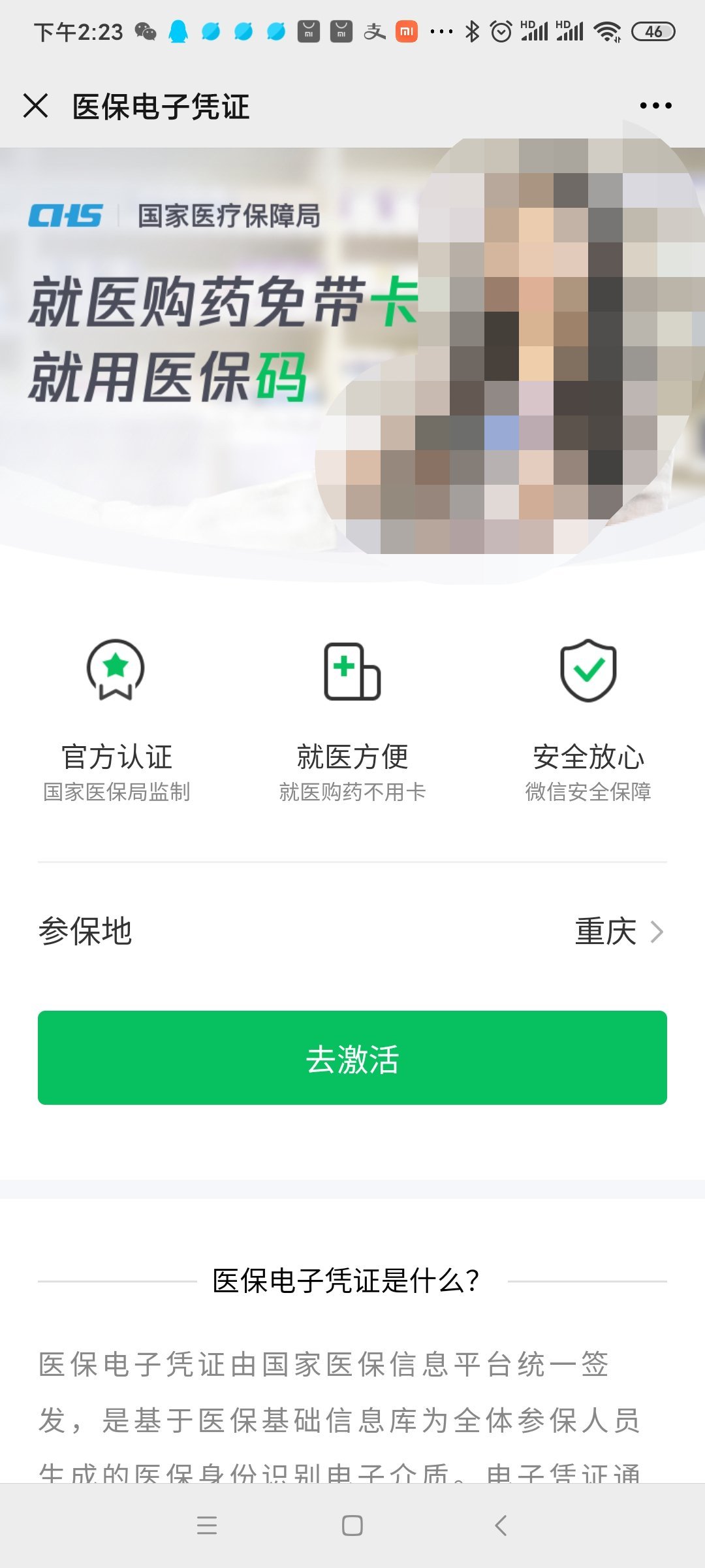 二、重庆医保电子凭证怎么激活