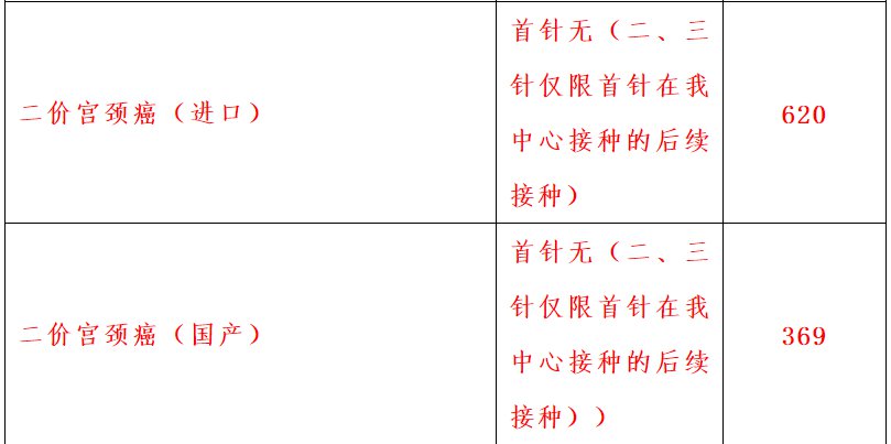 国产二价369元/针,进口二价620元/针,进口四价838元/支,进口九价1338元/针