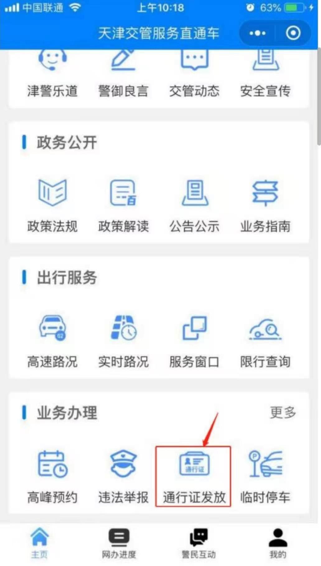 一、进入到“直通车”小程序页面,如图 1 所示。点击图 1 页面中的“通行证发放”。
