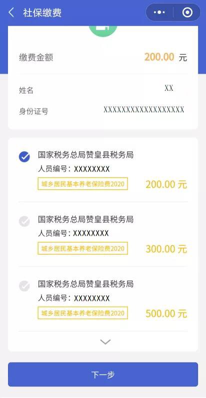 6.选择缴费档次,按提示进行操作;