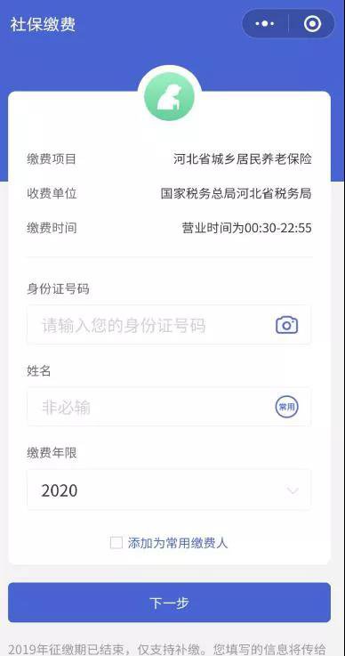 2020年度河北居民养老保险微信城市服务缴费操作指南(以石家庄为例)