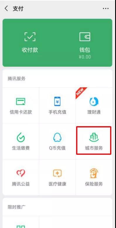 1.进入微信,依次按照如下路径操作:我→支付→城市服务;