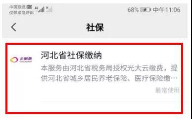 3.选择“河北省社保缴纳”;