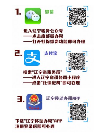 2022年1月1日起,灵活就业人员基本养老保险费可以通过辽宁税务微信公众号微办税、辽宁移动办税APP、支付宝-国家税务总局辽宁省税务局小程序、办税服务大厅窗口、辽事通APP自主申报缴费。