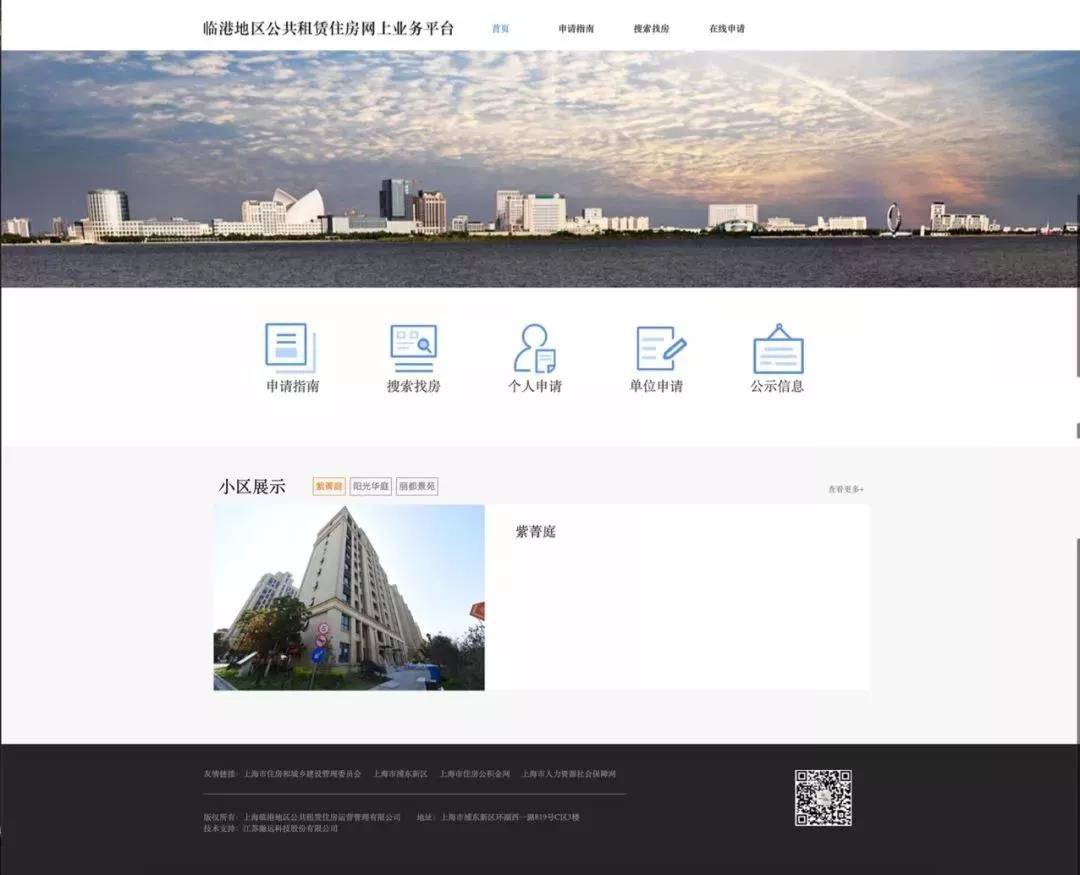 打开临港地区公租房信息化平台首页,页面上方是信息化平台的菜单,分为申请指南,搜索找房,在线申请。