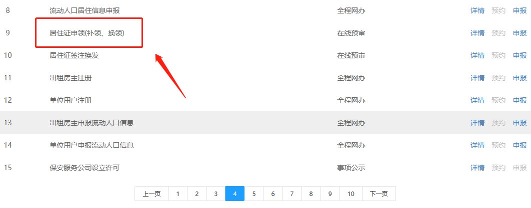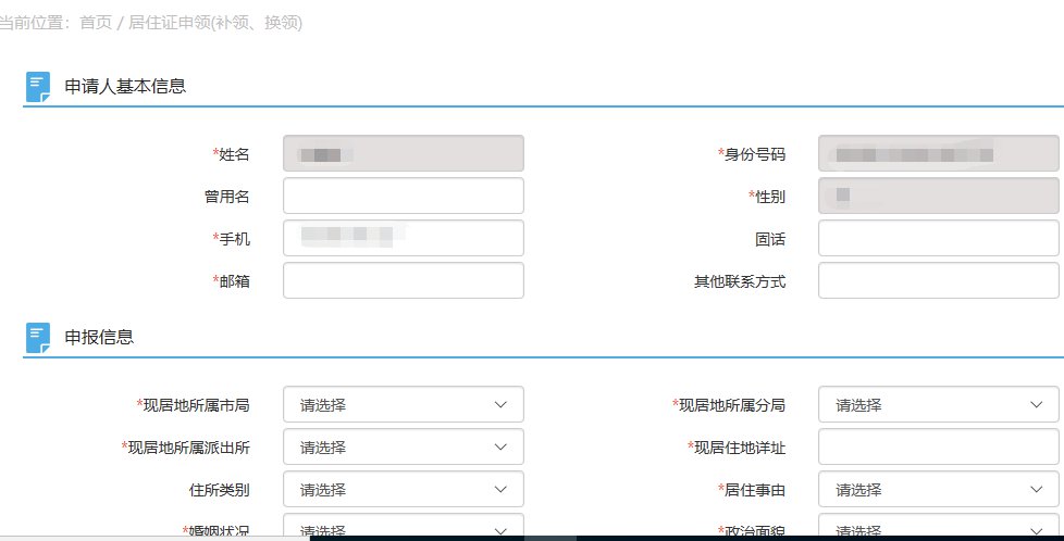 在地4页找到“居住证申领(补领、换领)”进入页面填写个人信息