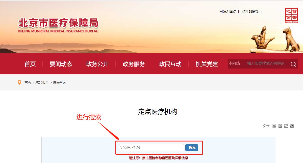 3、在查询框中输入所查“定点医疗机构的名称”即可查询到“所查定点医疗机构的编码”。
