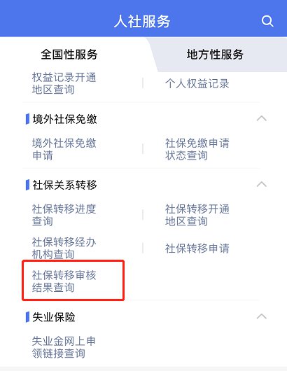 5、查询受理审核结果申请之后,如果想查询进度 可以点击社保转移审核结果查询