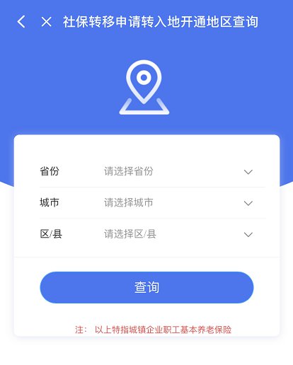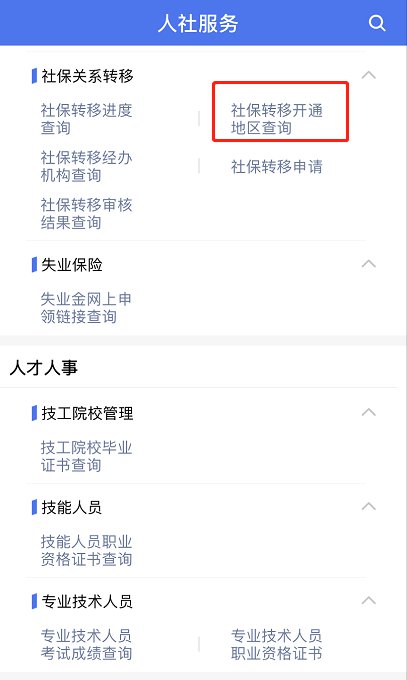 2、再点击社保转移开通地区查询(开通社保转移的地区依据您个人的转移地进行查询,这里只以整个平台为主,不以某个城市为个例)