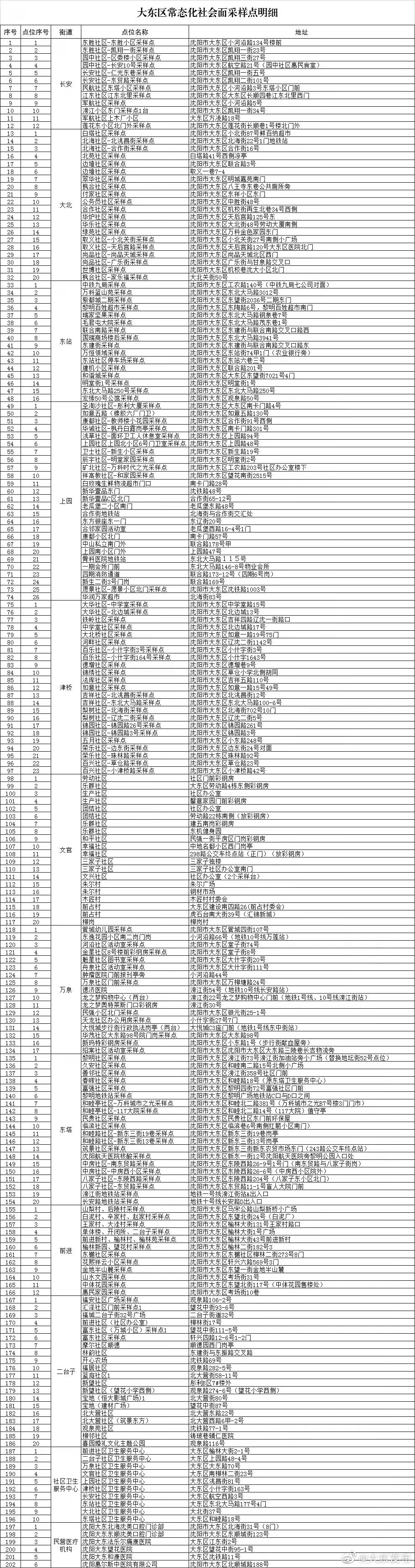 2022沈阳大东区常态化核酸检测点位地址一览