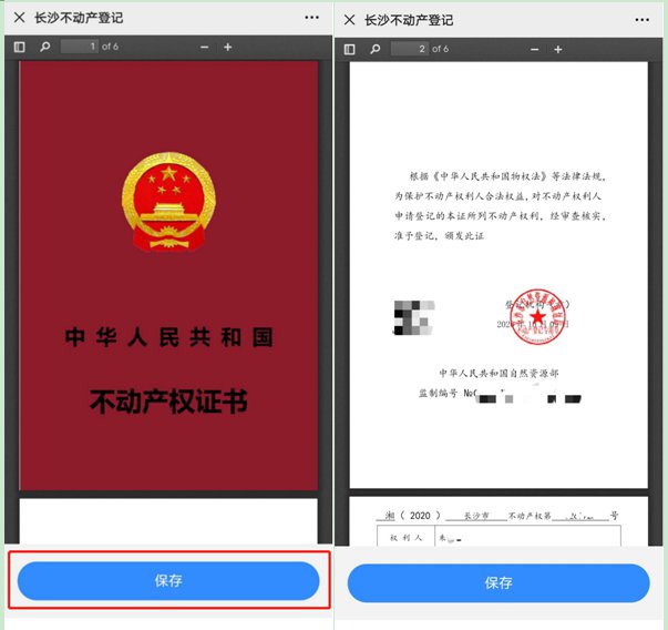 七、电子证照具体内容主要包括封面、签章页、电子证照信息页及宗地图和分户分室图的附图页。如需保存电子证照文件至本地,请点击“保存”按钮。显示效果如下: