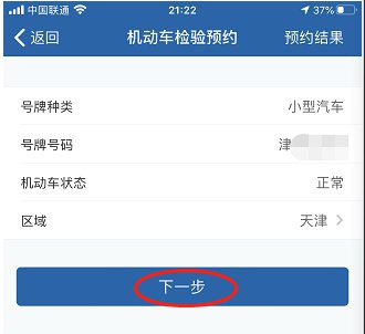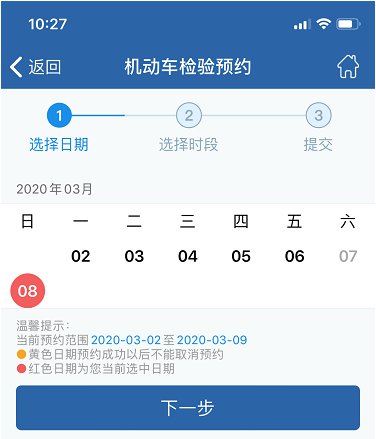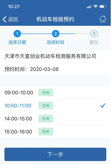 第七步、选择您的验车时段,点击下一步