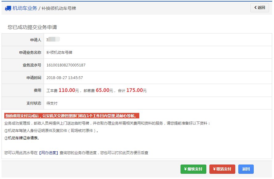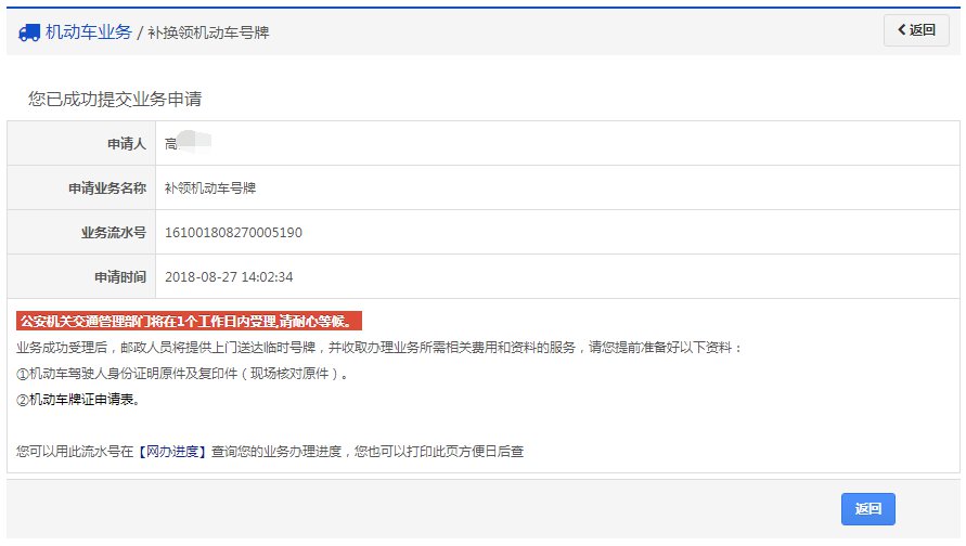 补换领机动车号牌流程