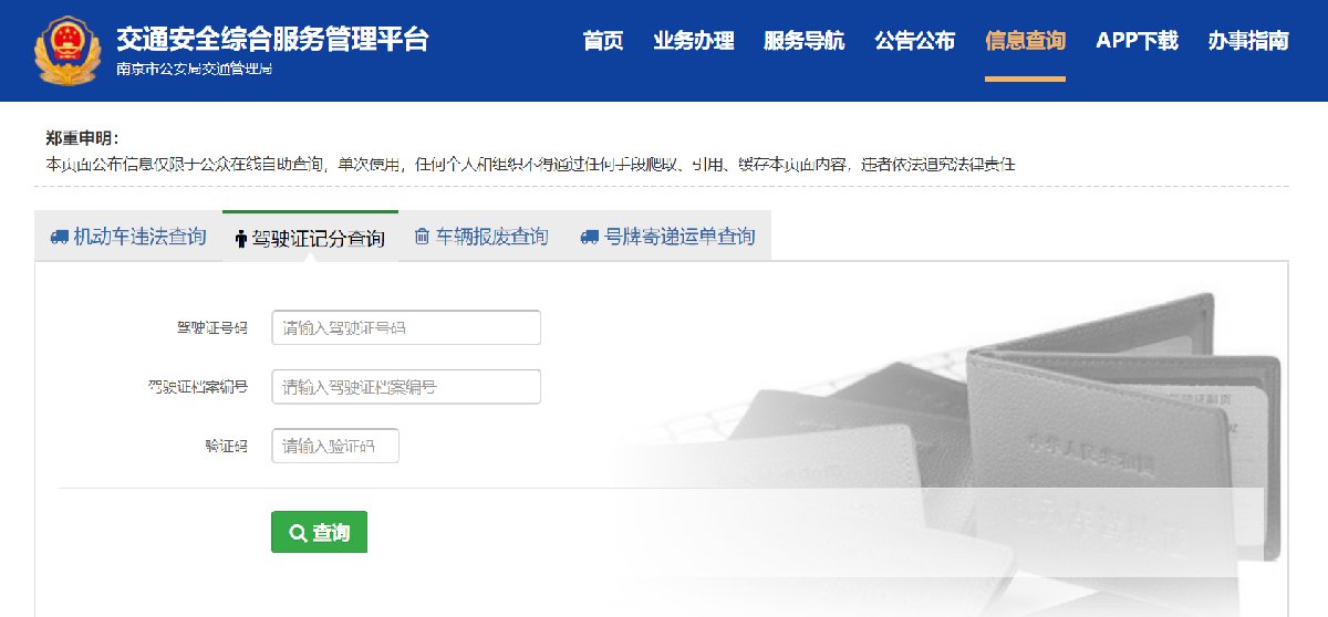 查询内容:驾驶人记分查询、车辆违法查询、曝光图片查询等。