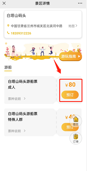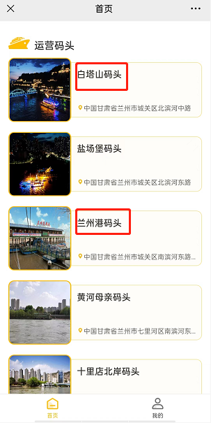 2)根据您要乘船的地点,选择“白塔山码头”或者“兰州港码头”;