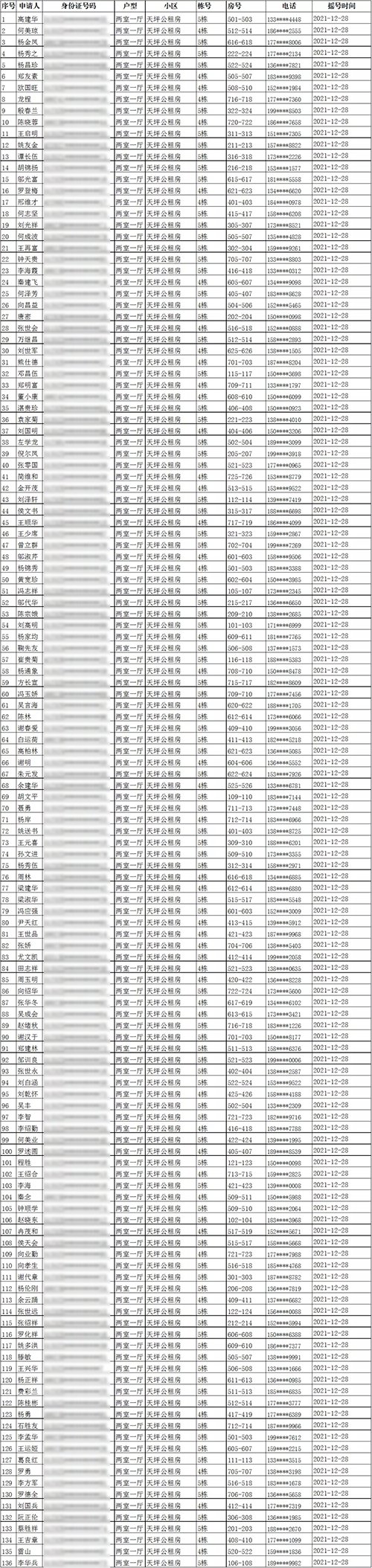一、2020年公租房轮候家庭摇号结果(入住办理时间:2022年2月21日-2月25日)