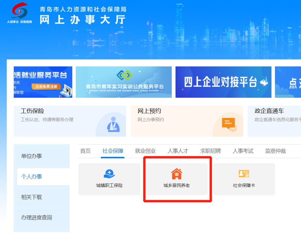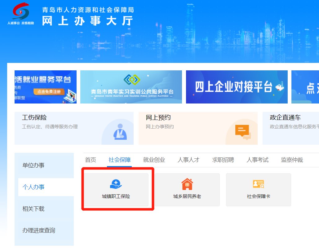 点此进入:青岛市人力资源和社会保障局-个人办事