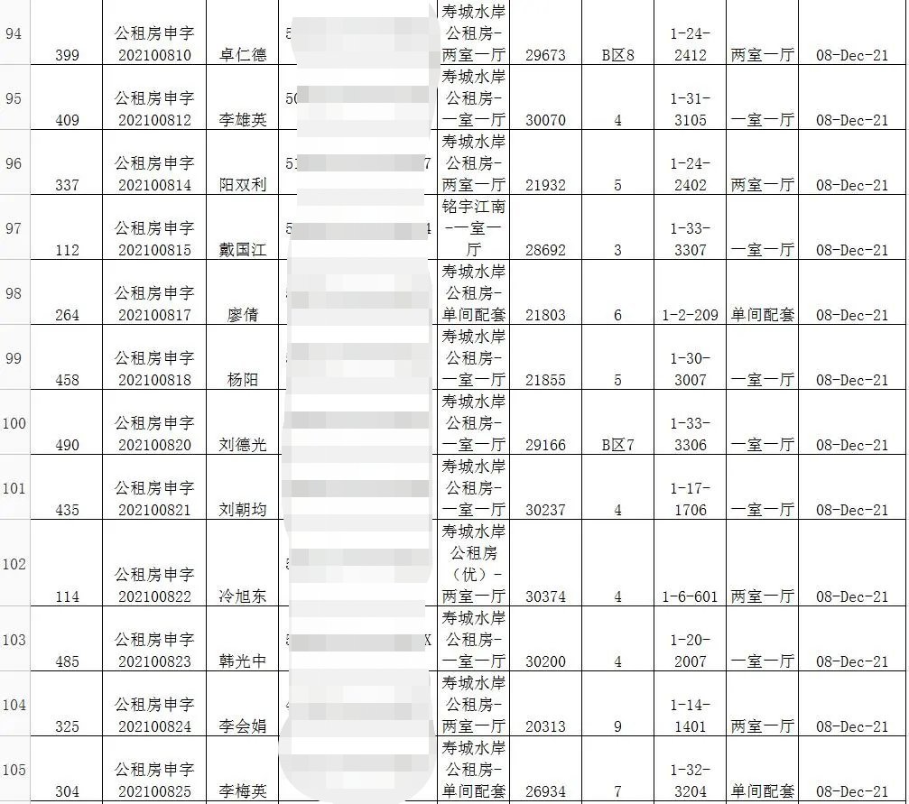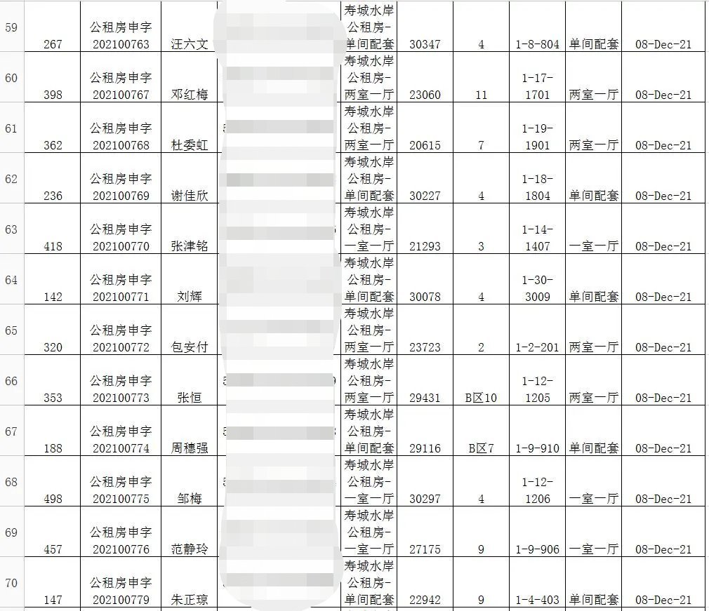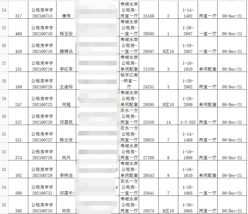 本次配租对象房源为卫古路保障房小区、铭宇江南、定慧晓月、江南公租房、寿城水岸公租房、晏家一期公租房、晏家育才西路保障房、在水一方公租房及在水一方保障房。