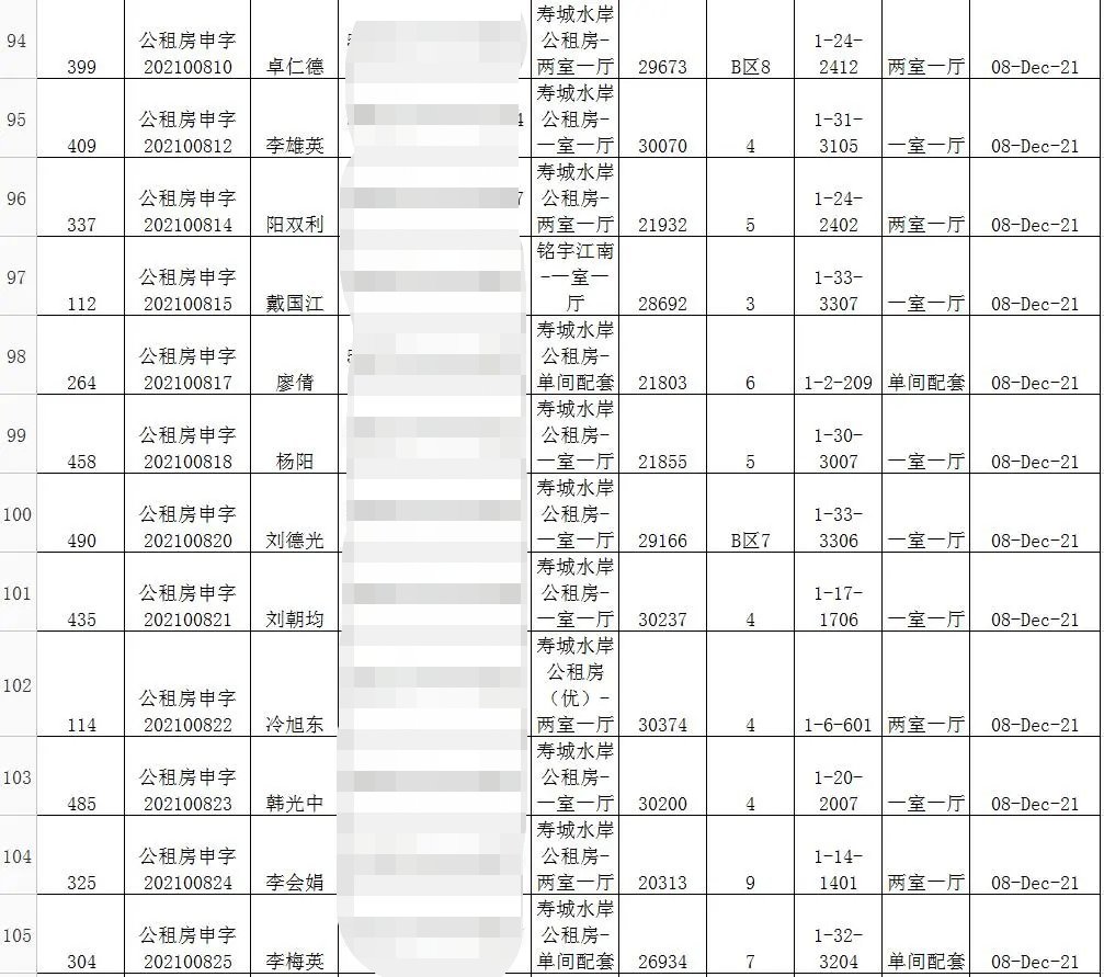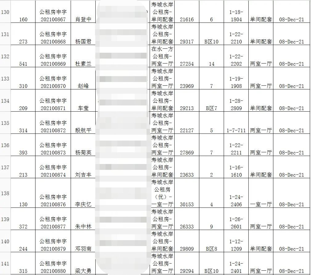 本次配租对象房源为卫古路保障房小区、铭宇江南、定慧晓月、江南公租房、寿城水岸公租房、晏家一期公租房、晏家育才西路保障房、在水一方公租房及在水一方保障房。
