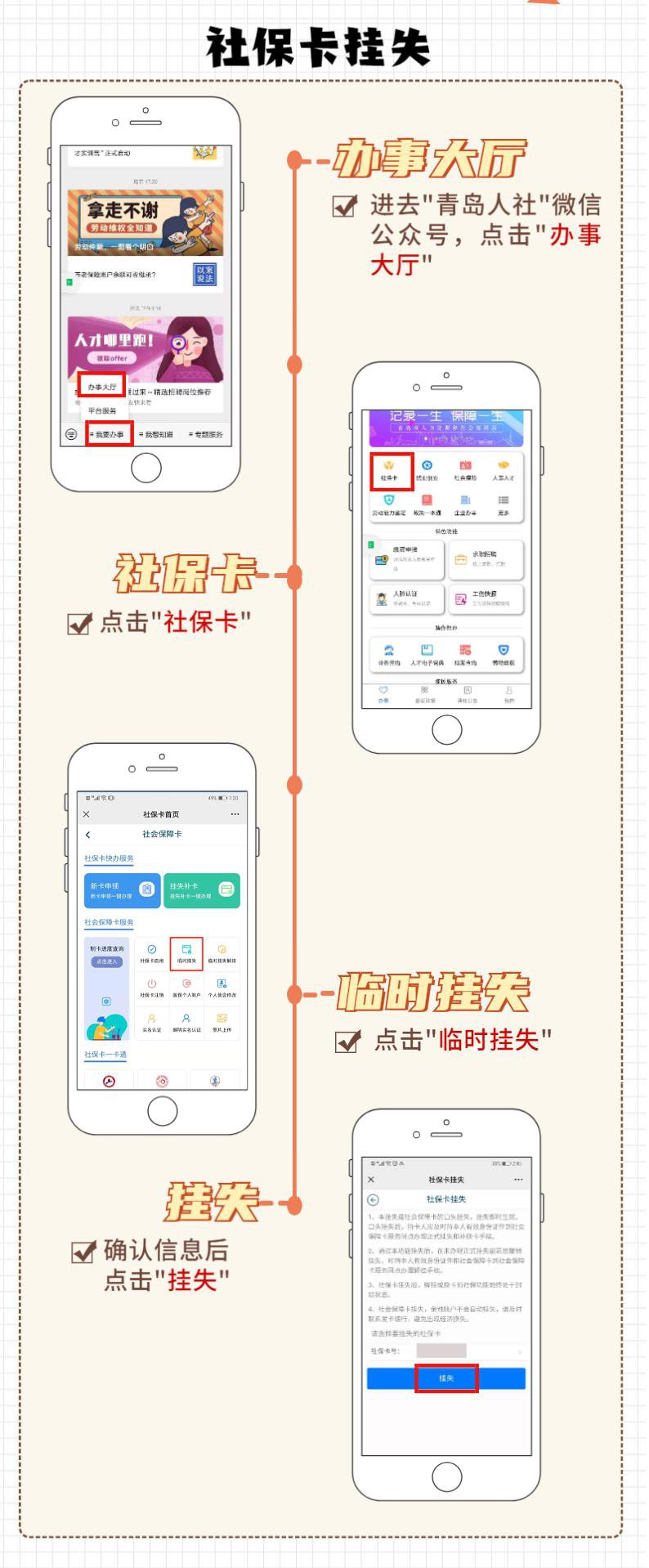 网上挂失操作流程(青岛人社微信公众号)