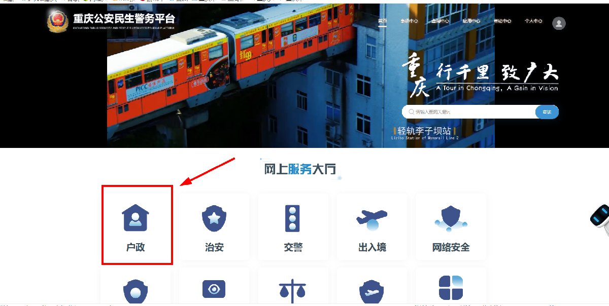2、点击“户政”,选择“户口迁入”