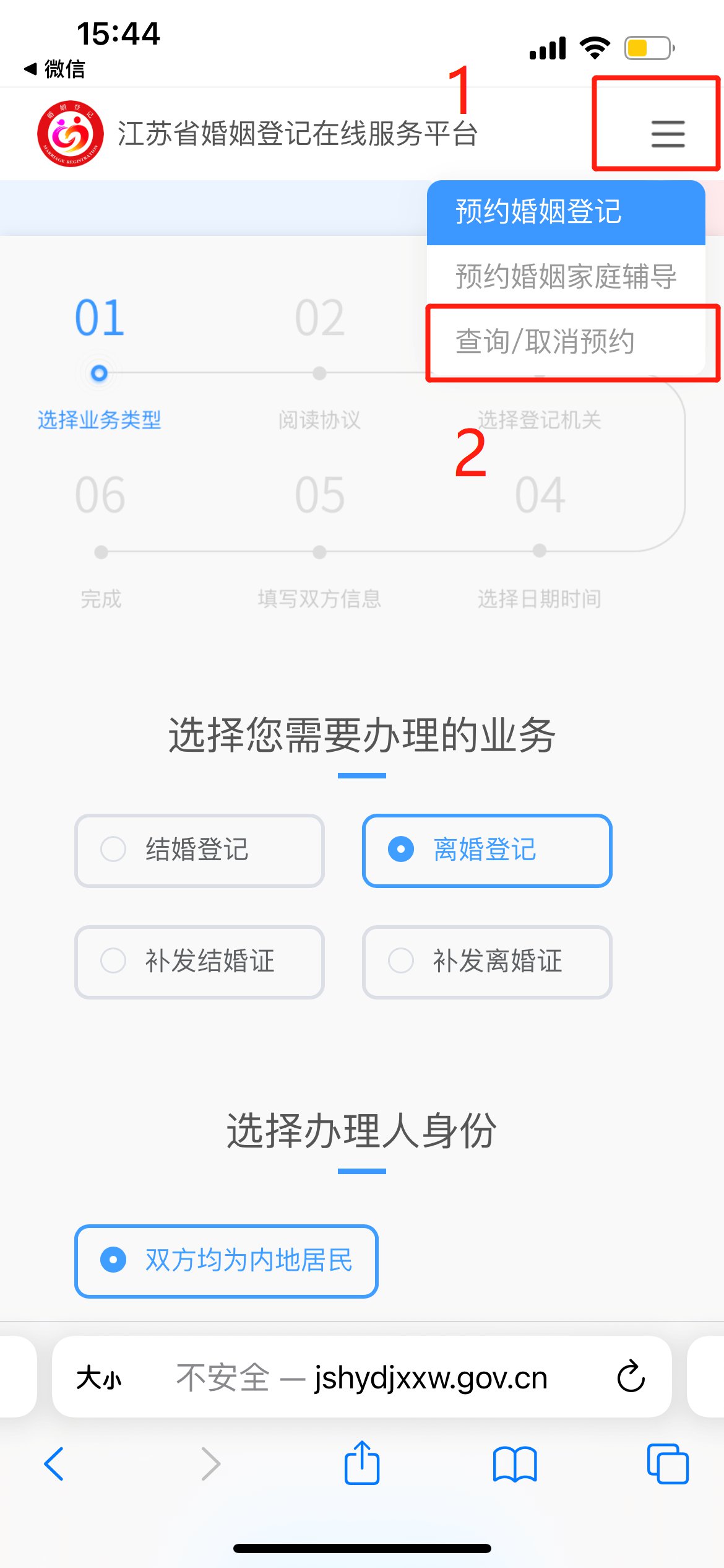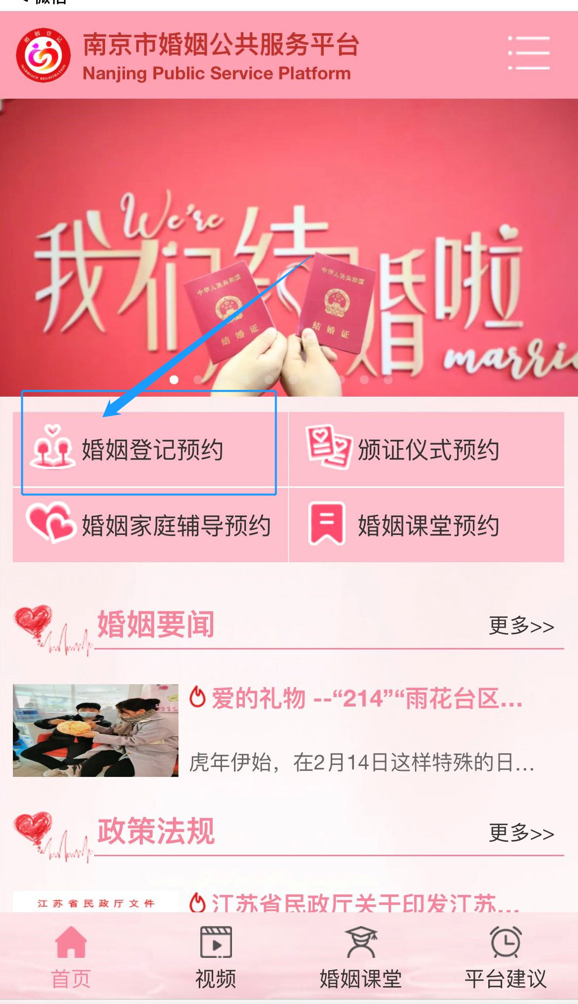 进入南京市婚姻公共服务平台,选择“婚姻登记预约”
