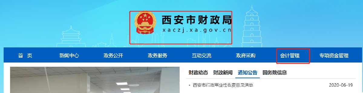 1、登录西安市财政局官网,选择【会计管理】,如下图