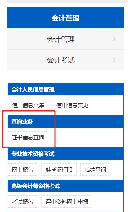 2、选择【证书信息查询】。如下图所示