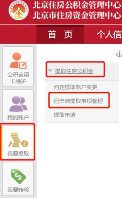 第五步:在首页点击【我要提取】-【提取住房公积金】-【已申请提取事项管理】。
