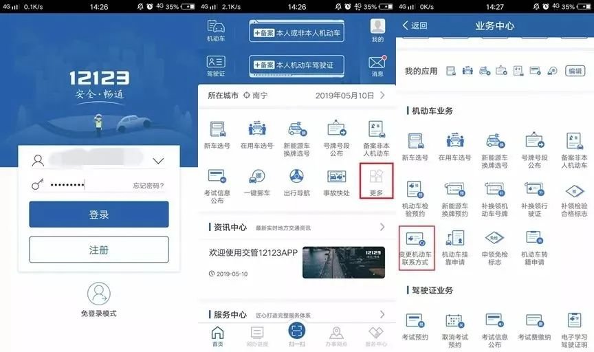 步骤一:登录“交管12123”APP,通过【业务中心】→【变更机动车联系方式】,进入变更联系方式流程。
