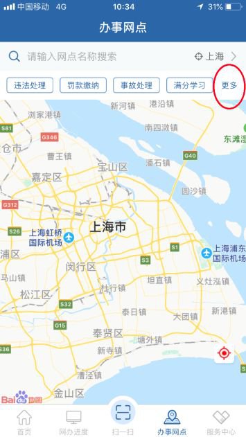 1、登录“交管12123”手机APP,点击右下角“办事网点”,选择“更多”中的“车辆年检”版块;