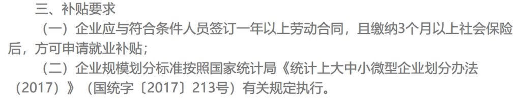 (一)企业应与符合条件人员签订一年以上劳动合同,且缴纳3个月以上社会保险后,方可申请就业补贴;