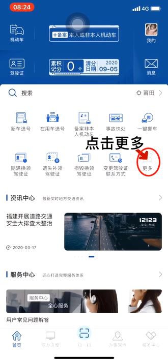 2. 在首页中点击“更多”,选择“驾驶证业务”→“选择变更驾驶证联系方式”,进入变更驾驶证联系方式业务。