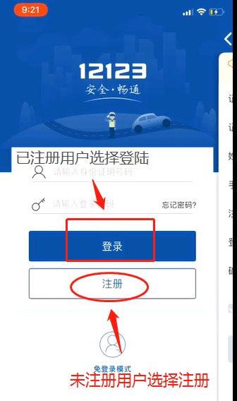 1. 下载并安装“交管12123”APP后,打开主界面,点击“注册”,未注册用户需要进行实名注册账号,已经注册的用户可以直接登陆