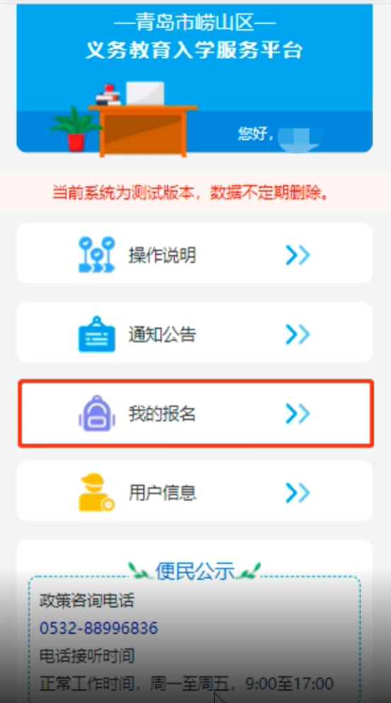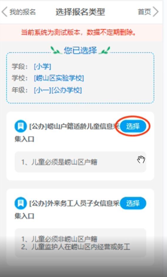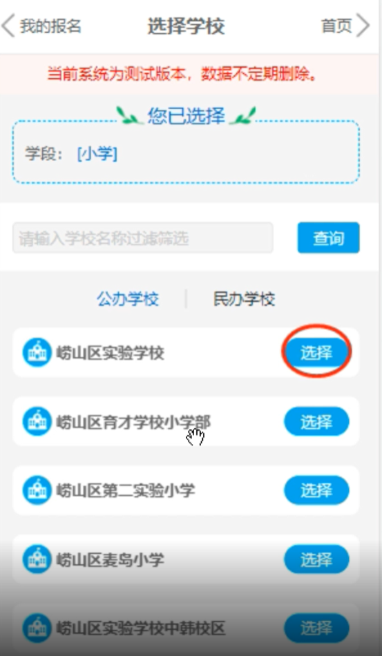 崂山区2022年小学入学平台填报步骤