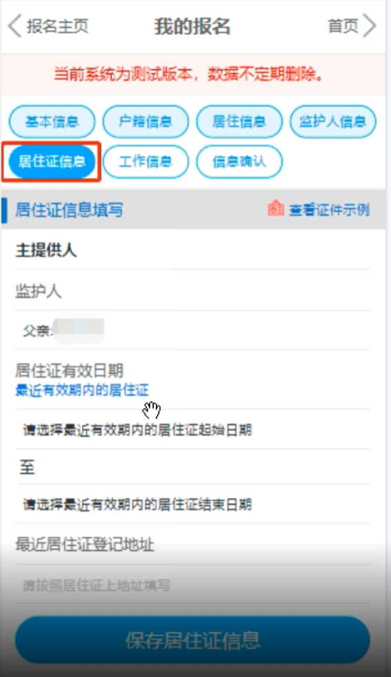 外来务工人员随迁子女入学填报时还需填写居住证信息、家长工作信息。