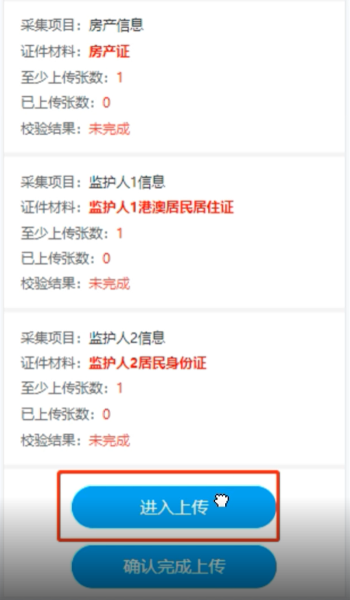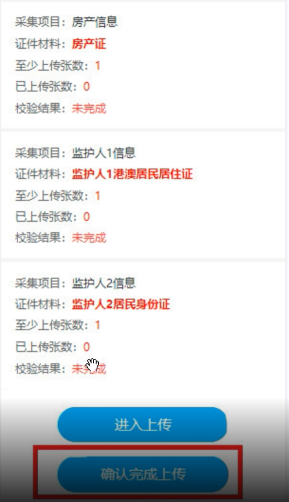 信息确认,上传证件。