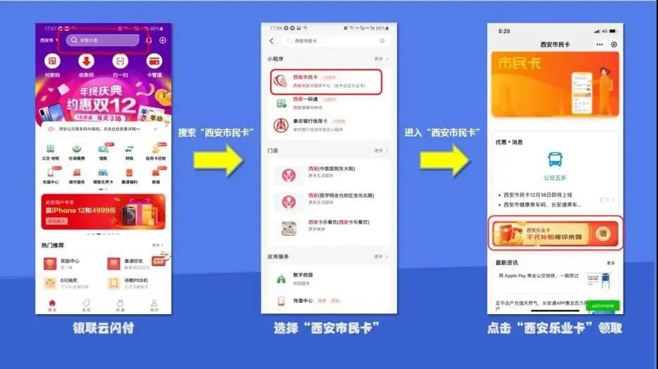 1、实名认证:申请人登录银联云闪付APP—西安市民卡,进入“西安乐业卡”模块,进行身份核验;