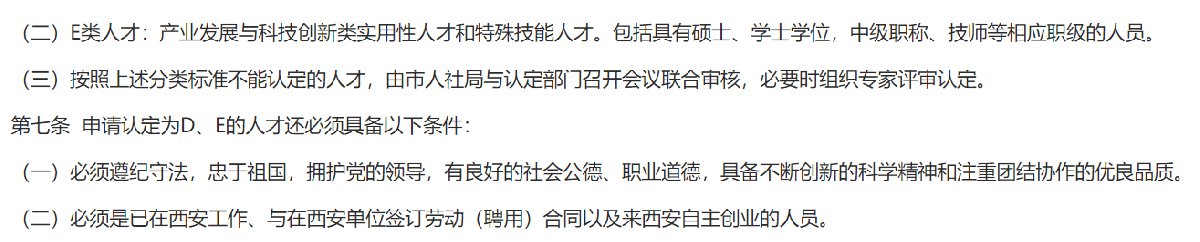 只有学位证还不能申请认定西安E类人才,因为还需要满足以下条件