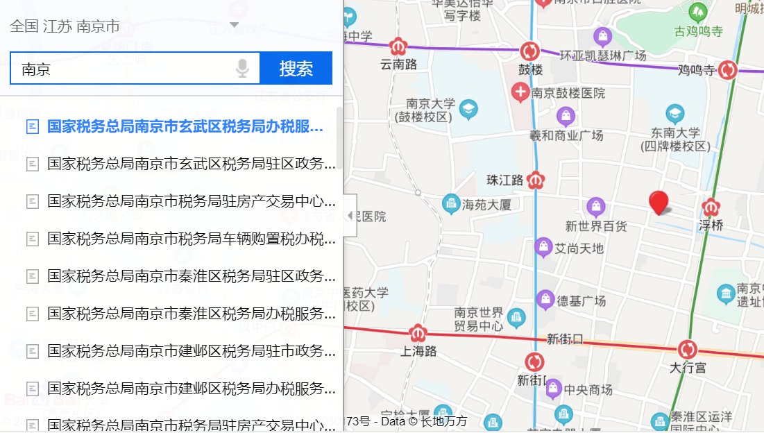进入查询入口,搜索南京,然后选择离自己最新的税务办理地点即可。