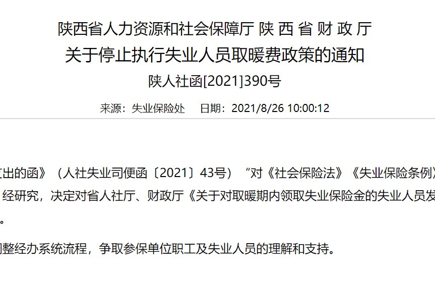 注:陕西失业人员取暖补贴申请停止执行!详见通知政策》》关于停止执行失业人员取暖费政策的通知