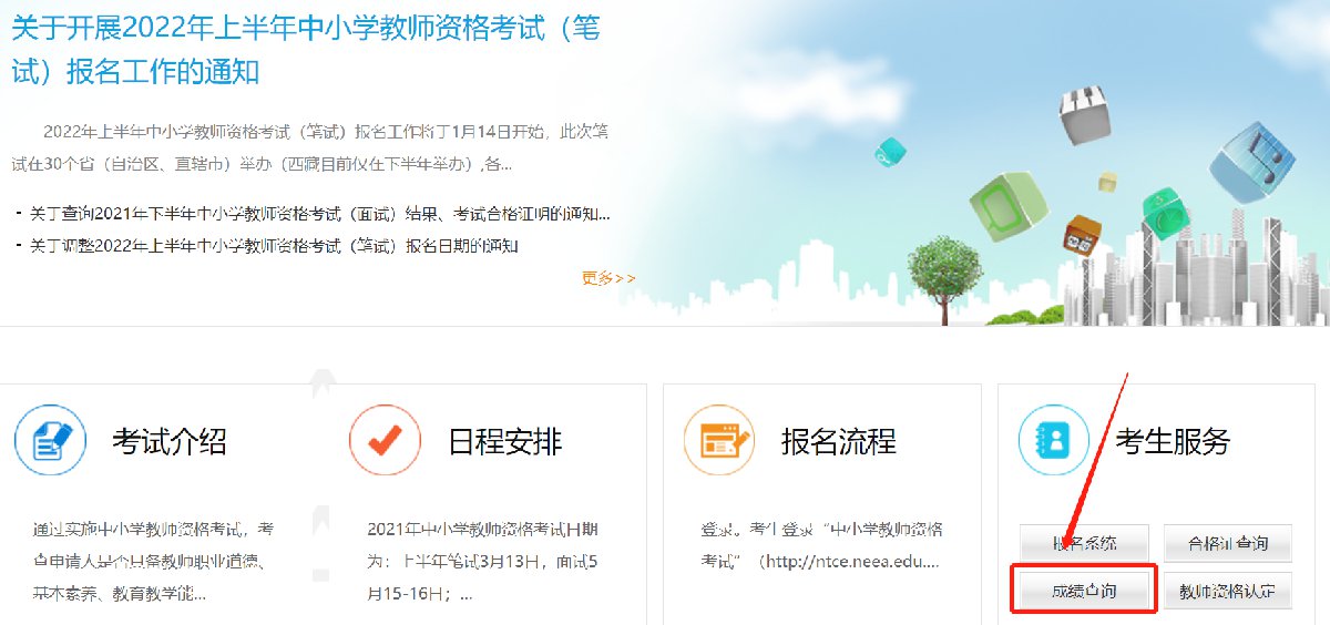 查询入口:中小学教师资格考试网站