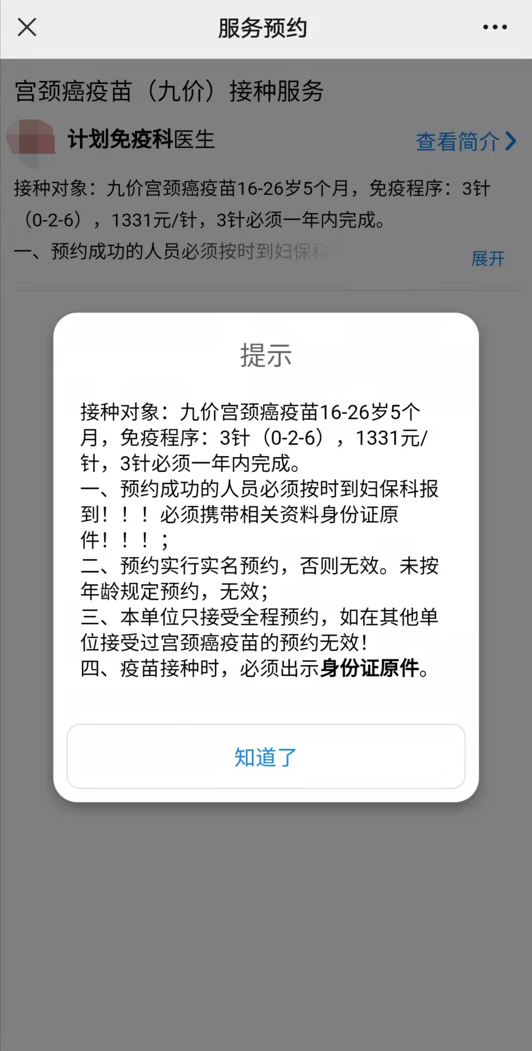 2、本单位只接受全程预约,如在其他单位接受过宫颈癌疫苗的预约无效!