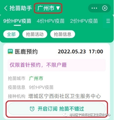 3、点击“开启订阅”,抢苗时间不错过!疫苗开放预约时,订阅按钮将变为预约入口,点击“立即预约”。
